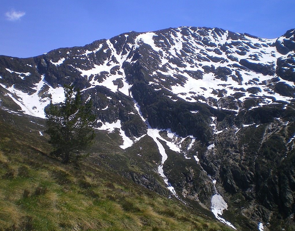 Pic Sarrasi, pique d'Endron, depuis le village de Goulier, au dessus de Vicdessos (Ariège, France sud, Pyrénées)