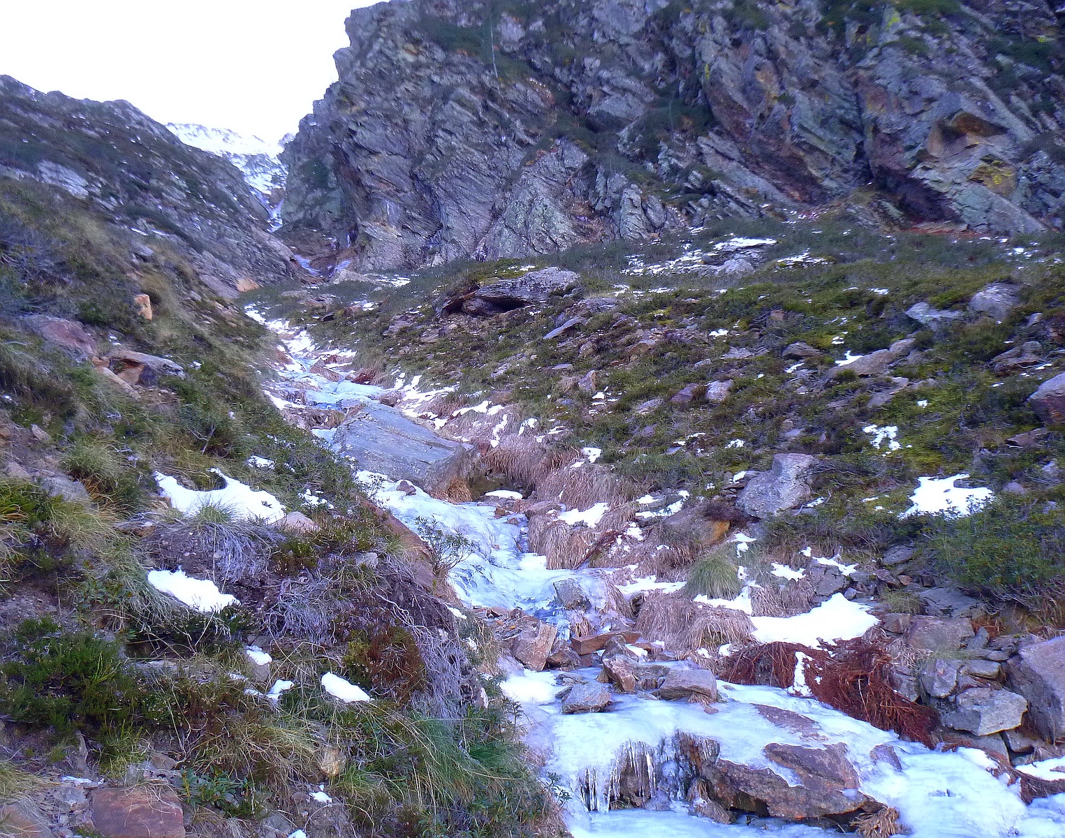 par le "Créneau d'Endron", ce beau couloir qui raye la face Nord, sortie gauche, sans faire le début (PD+)