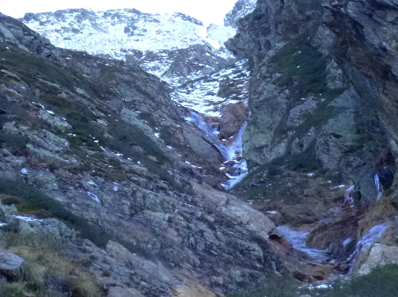 par le "Créneau d'Endron", ce beau couloir qui raye la face Nord, sortie gauche, sans faire le début (PD+)