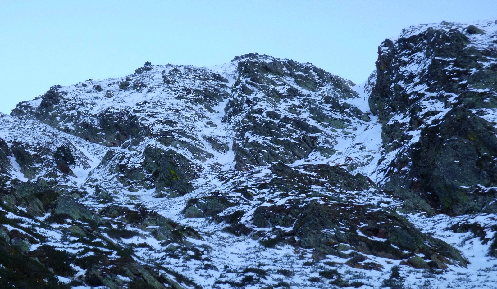 par le "Créneau d'Endron", ce beau couloir qui raye la face Nord, sortie gauche, sans faire le début (PD+)