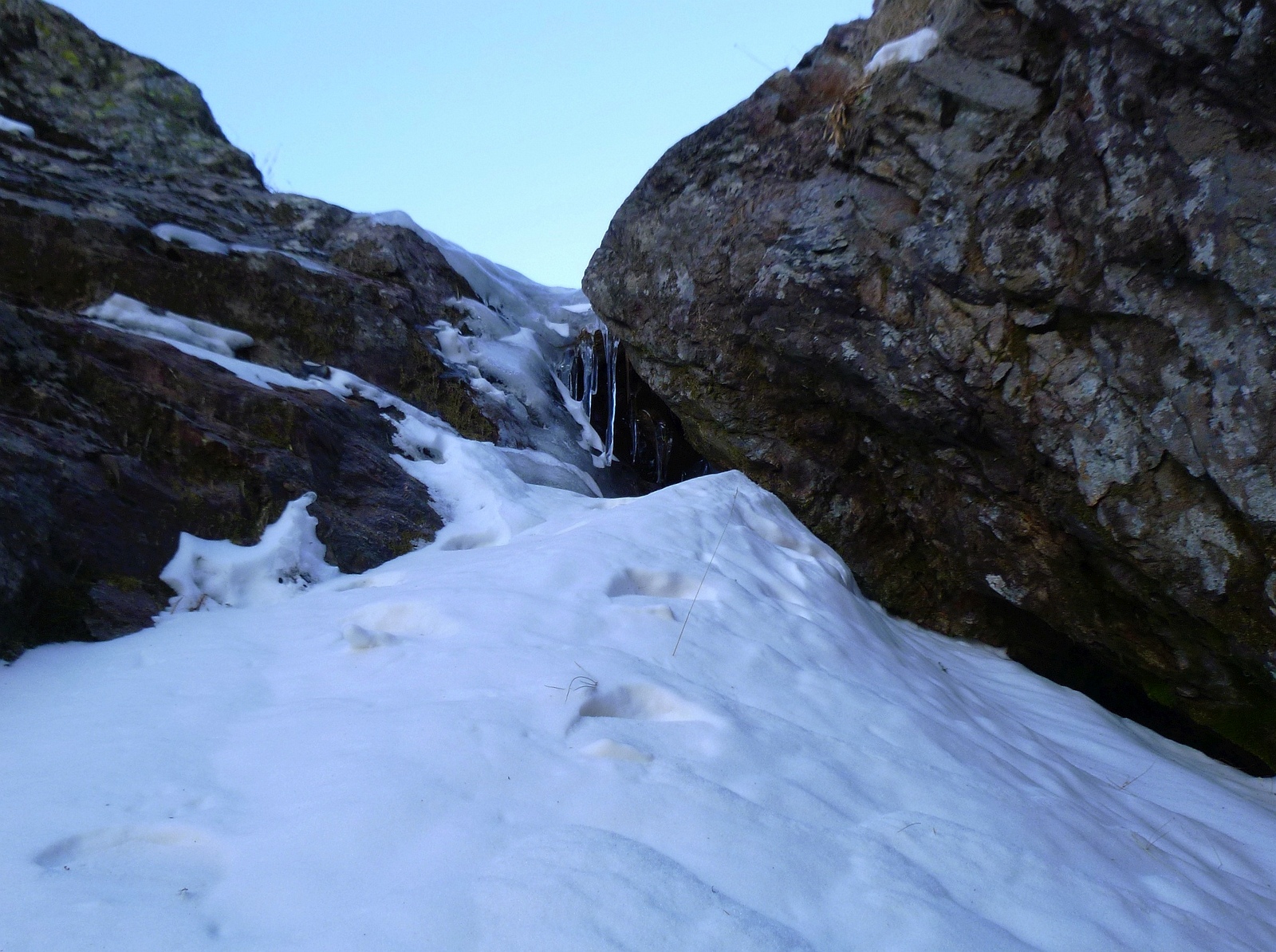 par le "Créneau d'Endron", ce beau couloir qui raye la face Nord, sortie gauche, sans faire le début (PD+)
