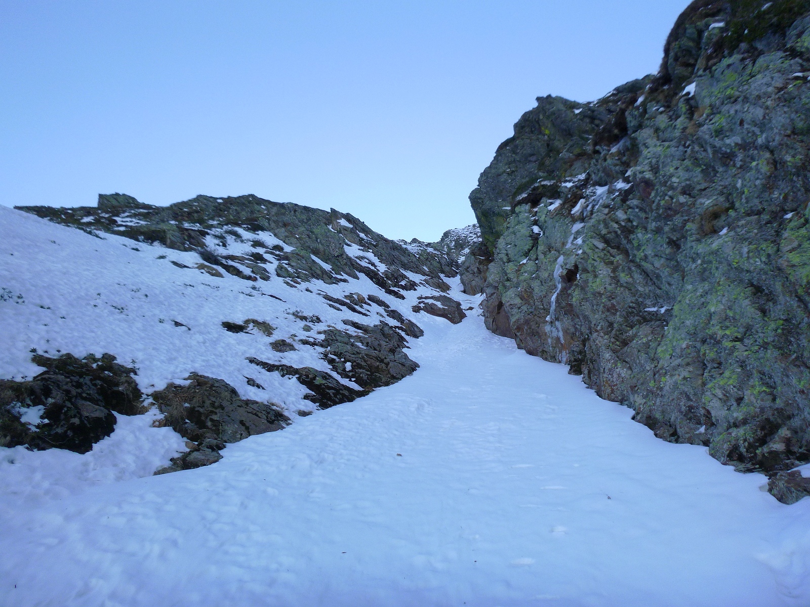 par le "Créneau d'Endron", ce beau couloir qui raye la face Nord, sortie gauche, sans faire le début (PD+)