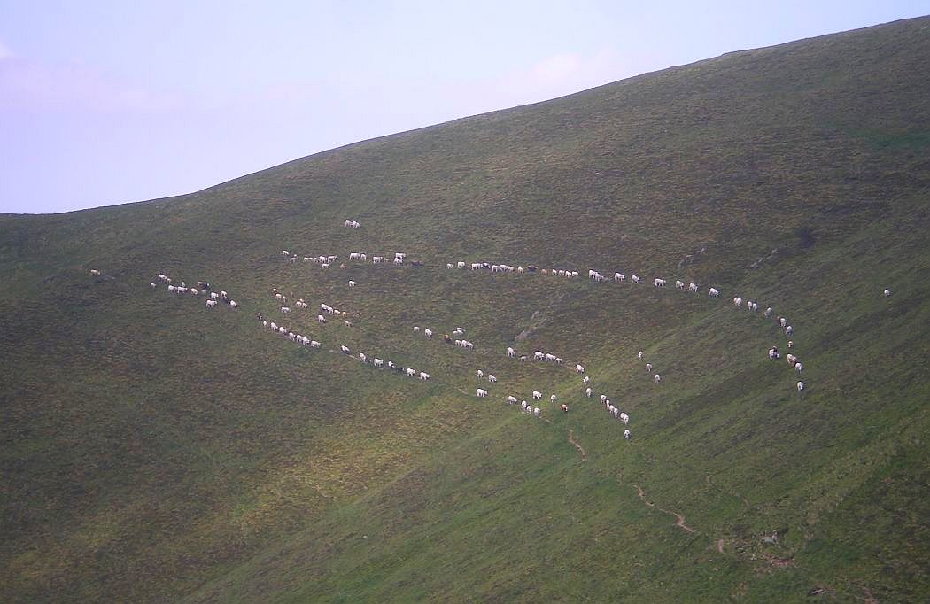 Pic Sarrasi, pique d'Endron, depuis le village de Goulier, au dessus de Vicdessos (Ariège, France sud, Pyrénées)