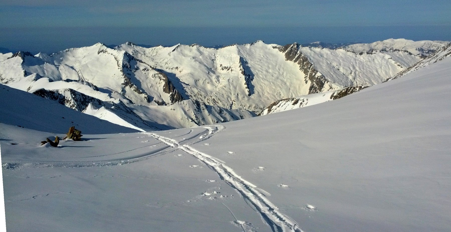 Rando à ski dans les Pyrénées, en haute Ariège au dessus de Vicdessos