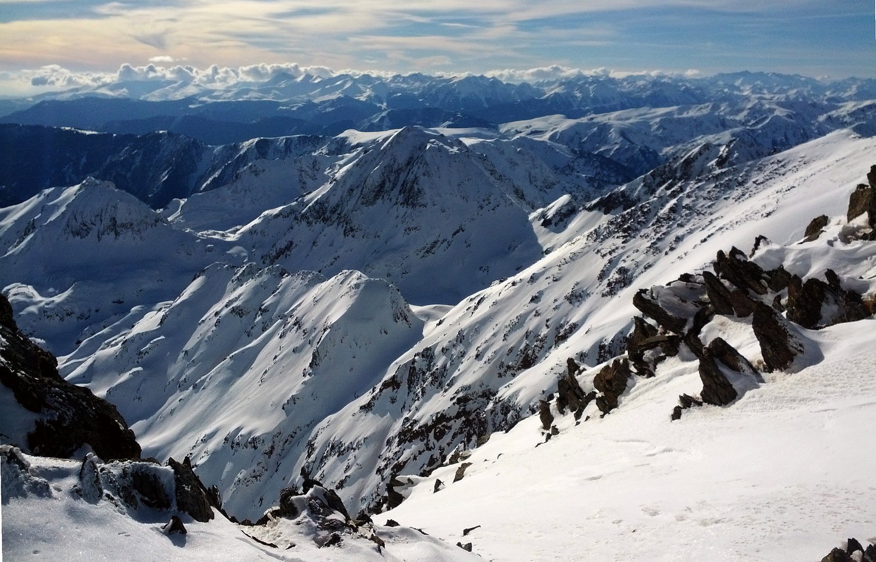 Rando à ski dans les Pyrénées, en haute Ariège au dessus de Vicdessos
