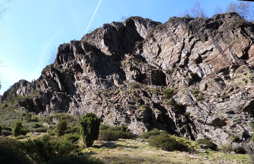 Après le beau replat et la passerelle de Caudière, le GR10 passe dans une barre rocheuse raide, très dangereuse en hiver (neige et glace), mais qu'on peut éviter.