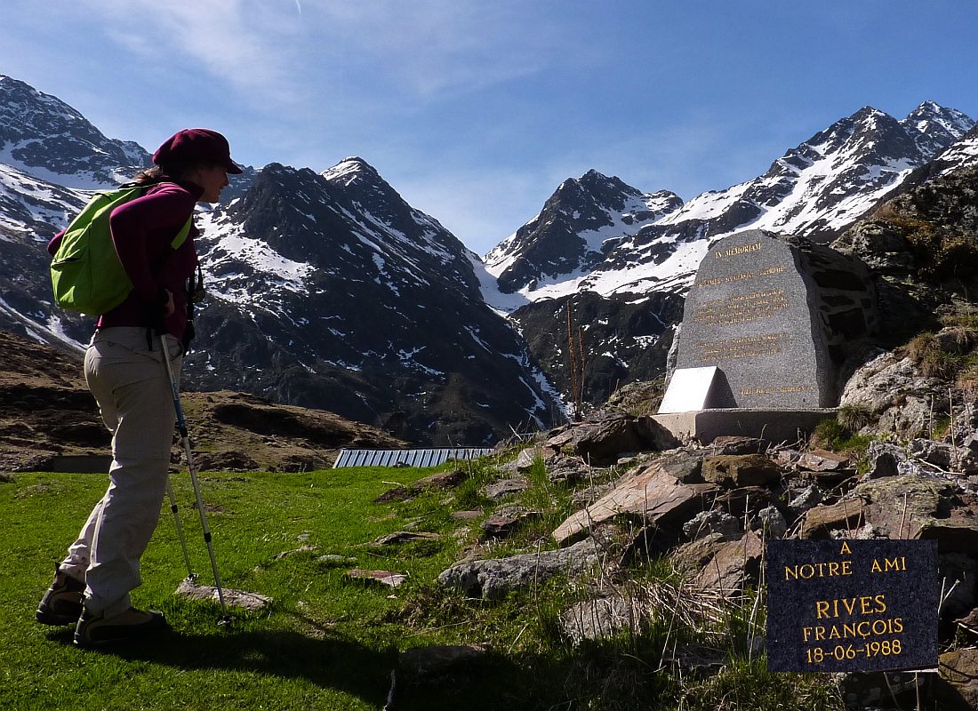 Avec Melge nous n'avons pas vu ce GR à la montée. Nous avons contourné par les pentes de neige sur la droite, en montant vers les "Hommes de Pierre", pour revenir à gauche vers 2400m par une pente raide de neige dure, mais sans danger. Ouf ! de l'autre coté on domine légèrement le petit étang Fourcat, sur lequel on redescend très facilement. Nous sommes ensuite redescendus par le GR10, bien cairné et marqué de ce coté ci. Mais la partie raide était dangereuse aussi en descente, et nous avons fait quelques pas de 3 sur rodhodendron pour éviter des passages verglacés.