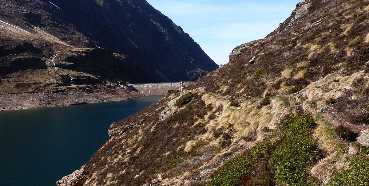 Après le beau replat et la passerelle de Caudière, le GR10 passe dans une barre rocheuse raide, très dangereuse en hiver (neige et glace), mais qu'on peut éviter.