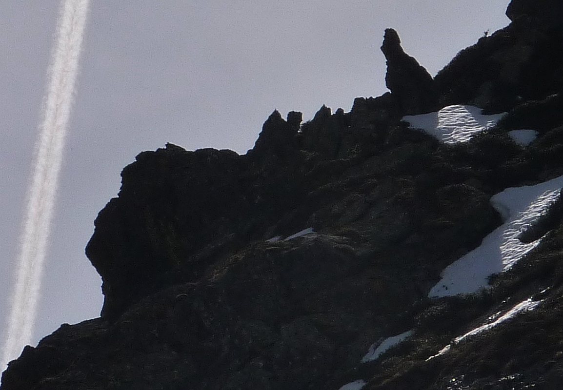 Avec Melge nous n'avons pas vu ce GR à la montée. Nous avons contourné par les pentes de neige sur la droite, en montant vers les "Hommes de Pierre", pour revenir à gauche vers 2400m par une pente raide de neige dure, mais sans danger. Ouf ! de l'autre coté on domine légèrement le petit étang Fourcat, sur lequel on redescend très facilement. Nous sommes ensuite redescendus par le GR10, bien cairné et marqué de ce coté ci. Mais la partie raide était dangereuse aussi en descente, et nous avons fait quelques pas de 3 sur rodhodendron pour éviter des passages verglacés.