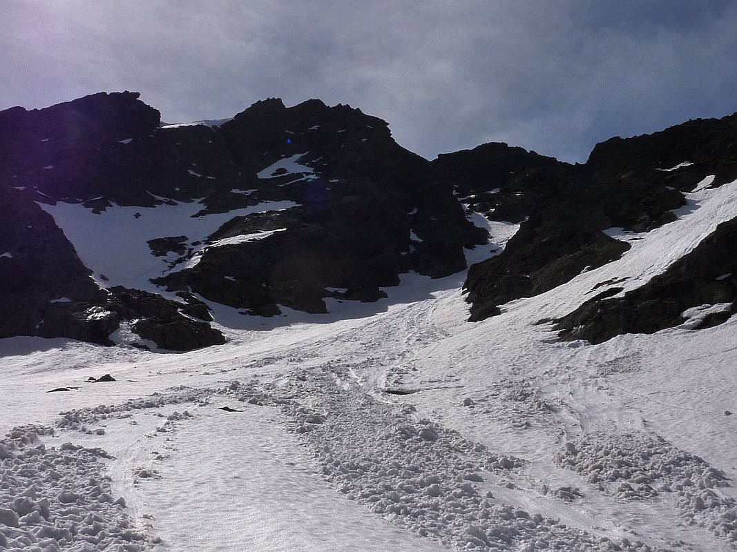 Après le beau replat et la passerelle de Caudière, le GR10 passe dans une barre rocheuse raide, très dangereuse en hiver (neige et glace), mais qu'on peut éviter.