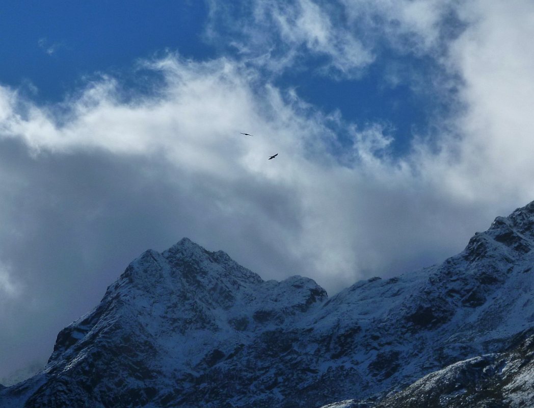 Très belle vue du sommet, montée longue, raide, pas mal de neige, et de la glace +1700m. Il aurait fallu des crampons que je n'avais pas: j'ai trouvé une astuce pour contourner sans danger le passage du GR dans une barre rocheuse avec des cascades de glaces