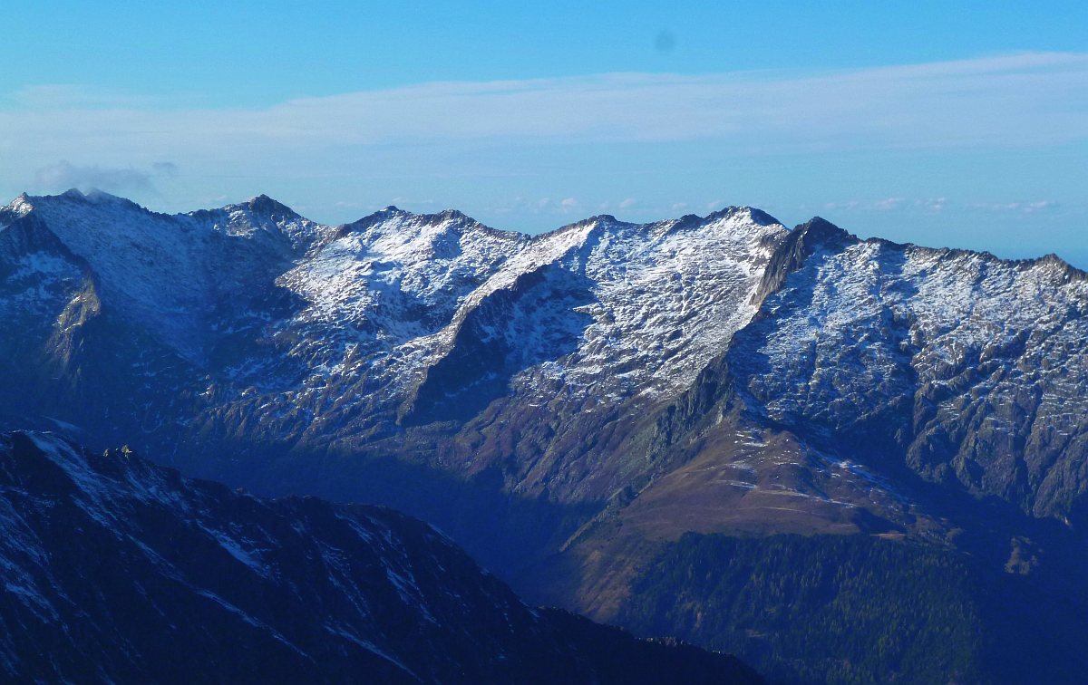 Très belle vue du sommet, montée longue, raide, pas mal de neige, et de la glace +1700m. Il aurait fallu des crampons que je n'avais pas: j'ai trouvé une astuce pour contourner sans danger le passage du GR dans une barre rocheuse avec des cascades de glaces
