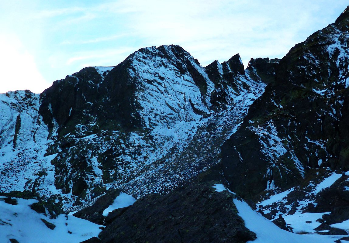 Très belle vue du sommet, montée longue, raide, pas mal de neige, et de la glace +1700m. Il aurait fallu des crampons que je n'avais pas: j'ai trouvé une astuce pour contourner sans danger le passage du GR dans une barre rocheuse avec des cascades de glaces