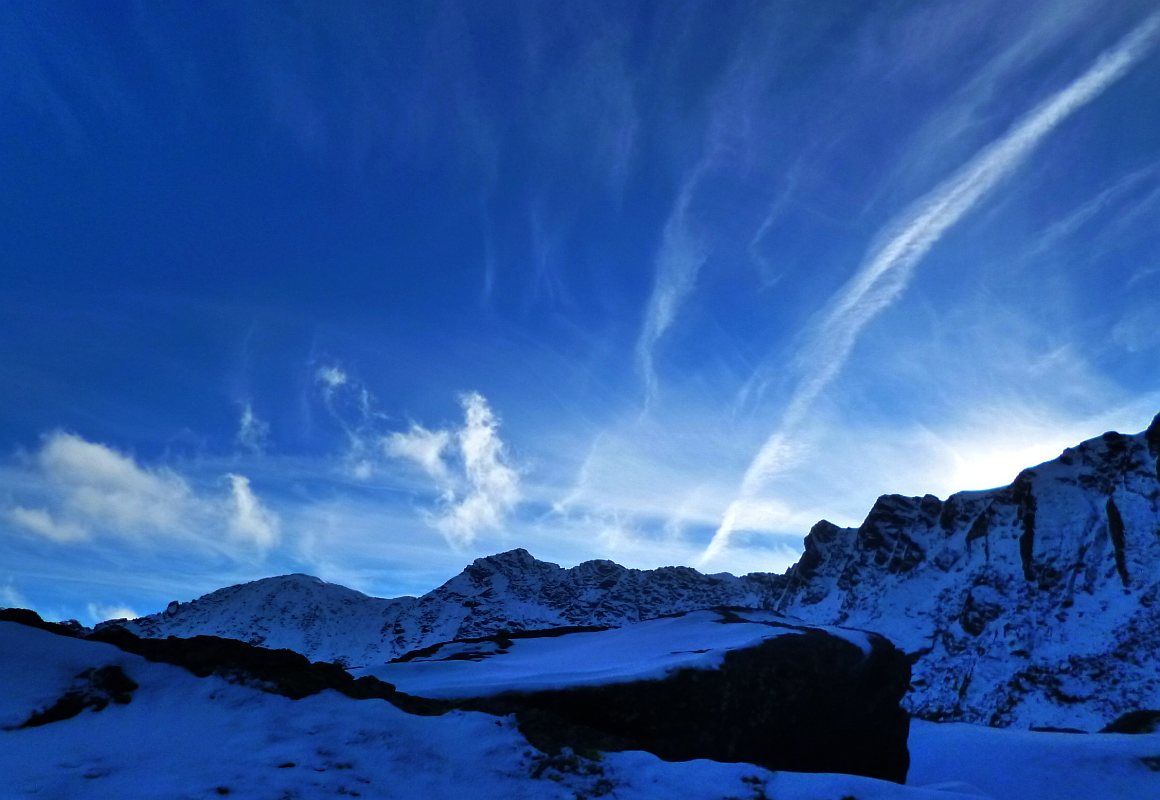 Très belle vue du sommet, montée longue, raide, pas mal de neige, et de la glace +1700m. Il aurait fallu des crampons que je n'avais pas: j'ai trouvé une astuce pour contourner sans danger le passage du GR dans une barre rocheuse avec des cascades de glaces