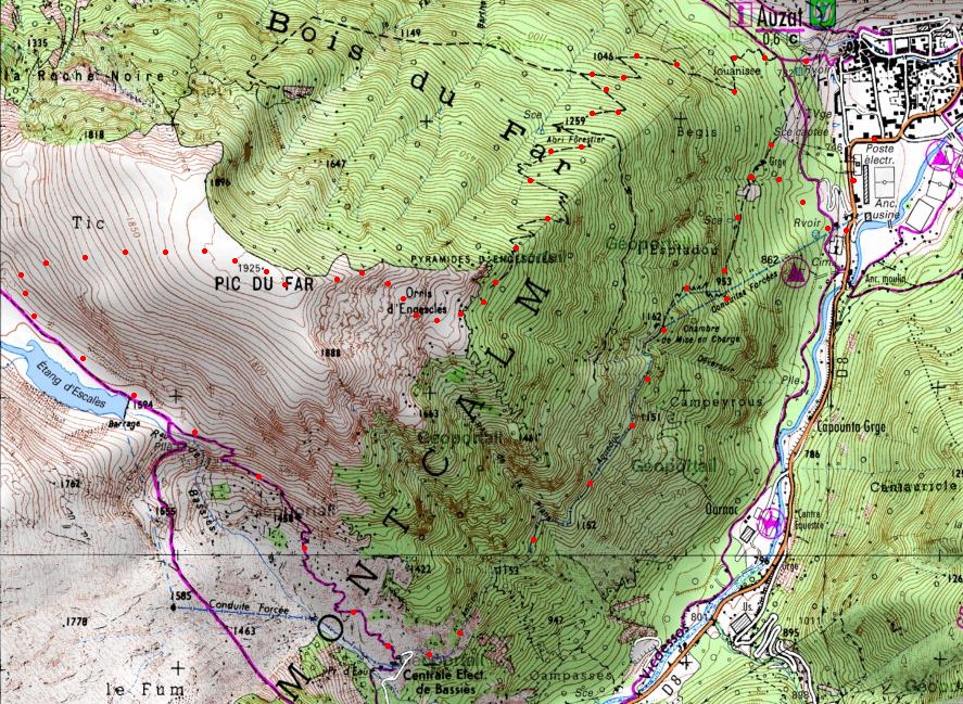 en boucle à partir d'Auzat (730m), Ariège, France(par Tarascon et Vicdessos)
