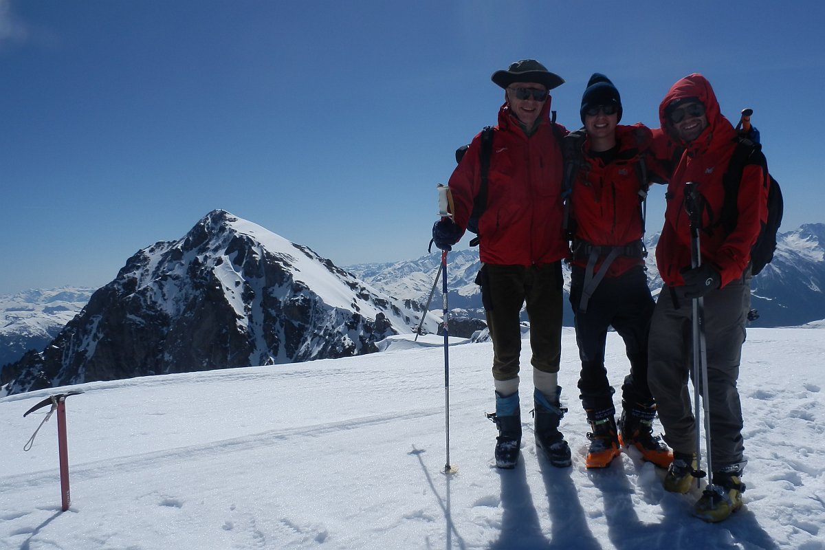 Denis Corpet. Balade faite avec Pierre-Yves PY Decaudin et le mystérieux AB, à ski le 14 Avril 2013, sur bonne neige, très froide et dure le matin, mais petite avalanche à la descente dans le raidillon SE !