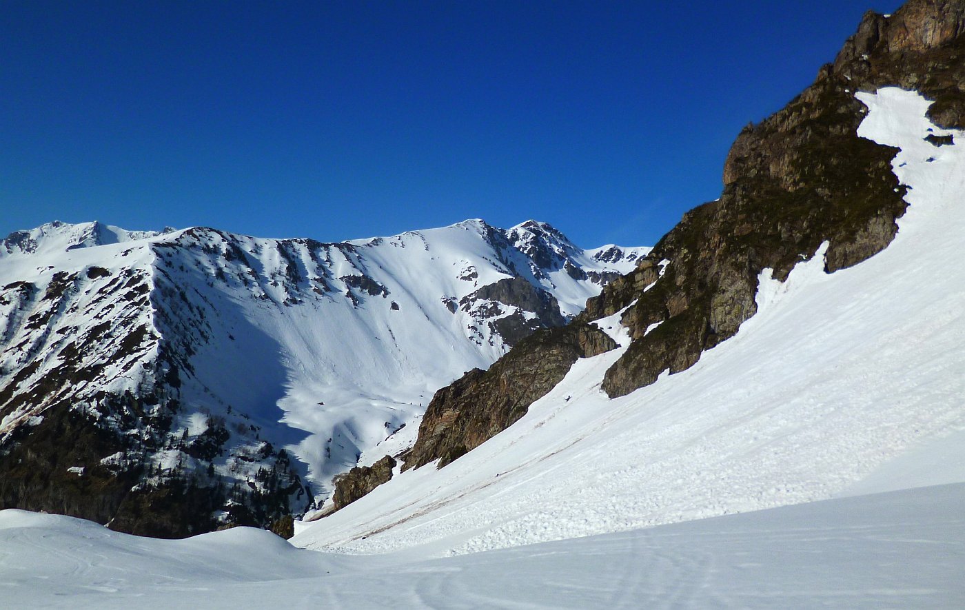 Denis Corpet. Balade faite avec Pierre-Yves PY Decaudin et le mystérieux AB, à ski le 14 Avril 2013, sur bonne neige, très froide et dure le matin, mais petite avalanche à la descente dans le raidillon SE !