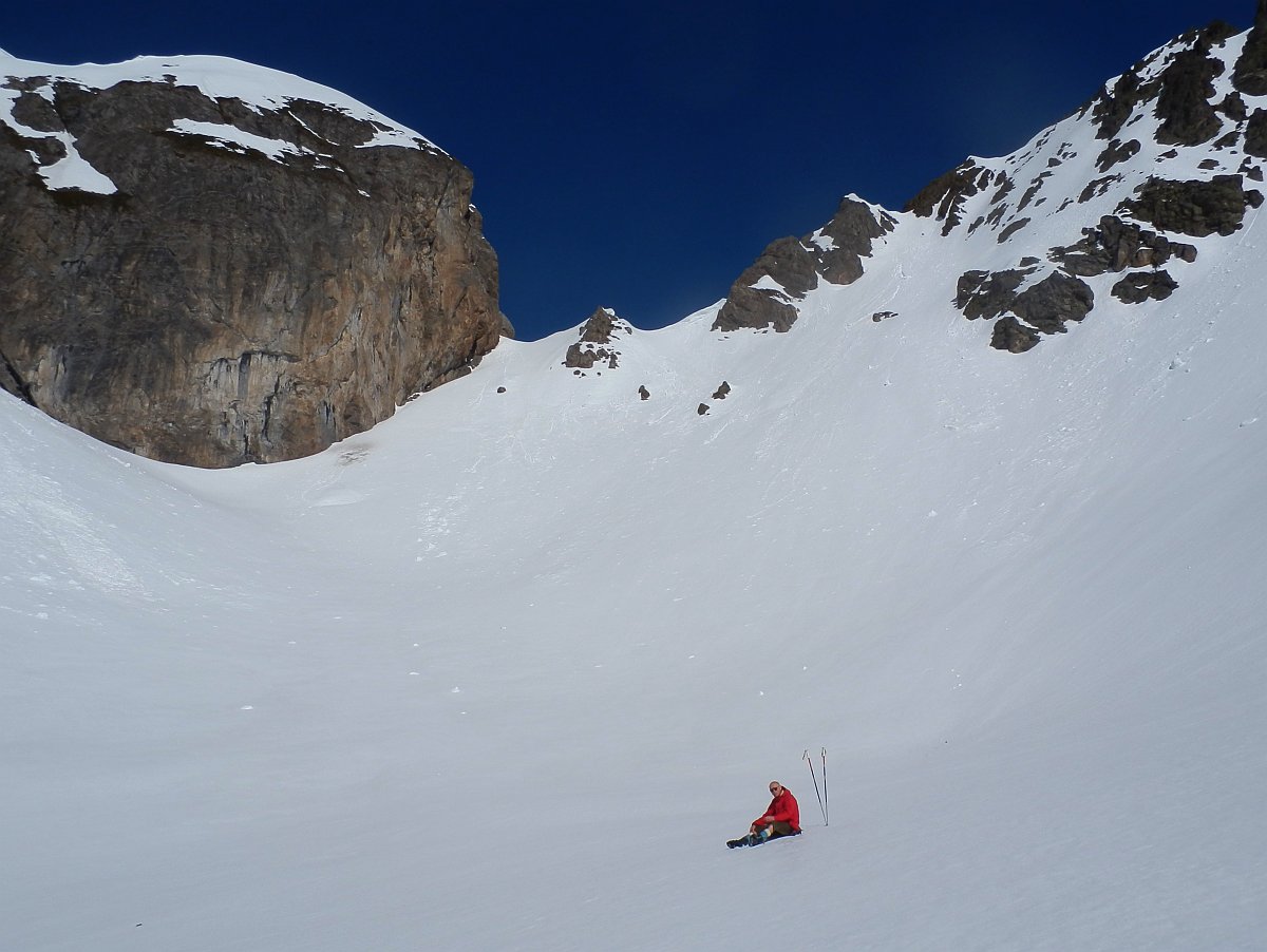 Denis Corpet. Balade faite avec Pierre-Yves PY Decaudin et le mystérieux AB, à ski le 14 Avril 2013, sur bonne neige, très froide et dure le matin, mais petite avalanche à la descente dans le raidillon SE !