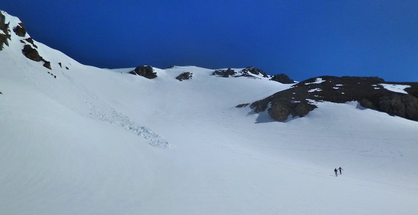 Denis Corpet. Balade faite avec Pierre-Yves PY Decaudin et le mystérieux AB, à ski le 14 Avril 2013, sur bonne neige, très froide et dure le matin, mais petite avalanche à la descente dans le raidillon SE !