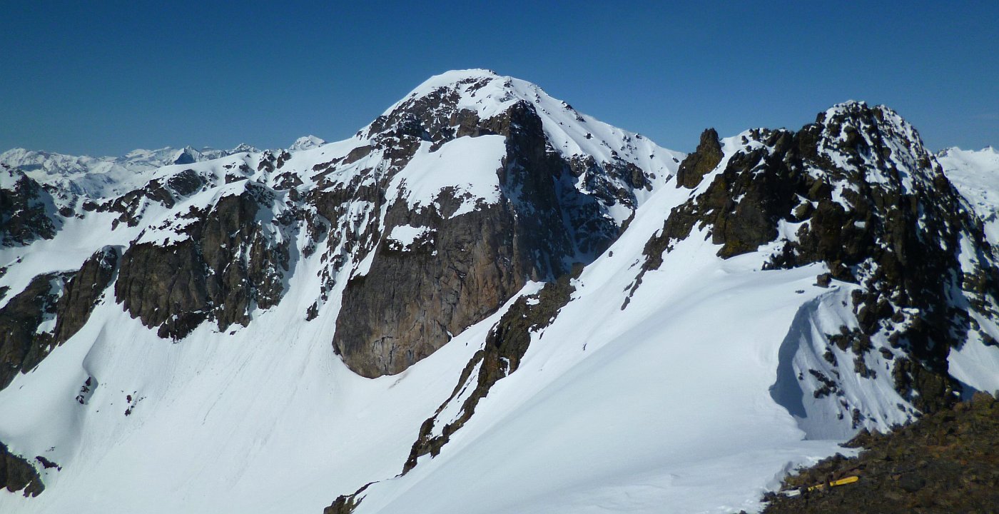 Denis Corpet. Balade faite avec Pierre-Yves PY Decaudin et le mystérieux AB, à ski le 14 Avril 2013, sur bonne neige, très froide et dure le matin, mais petite avalanche à la descente dans le raidillon SE !