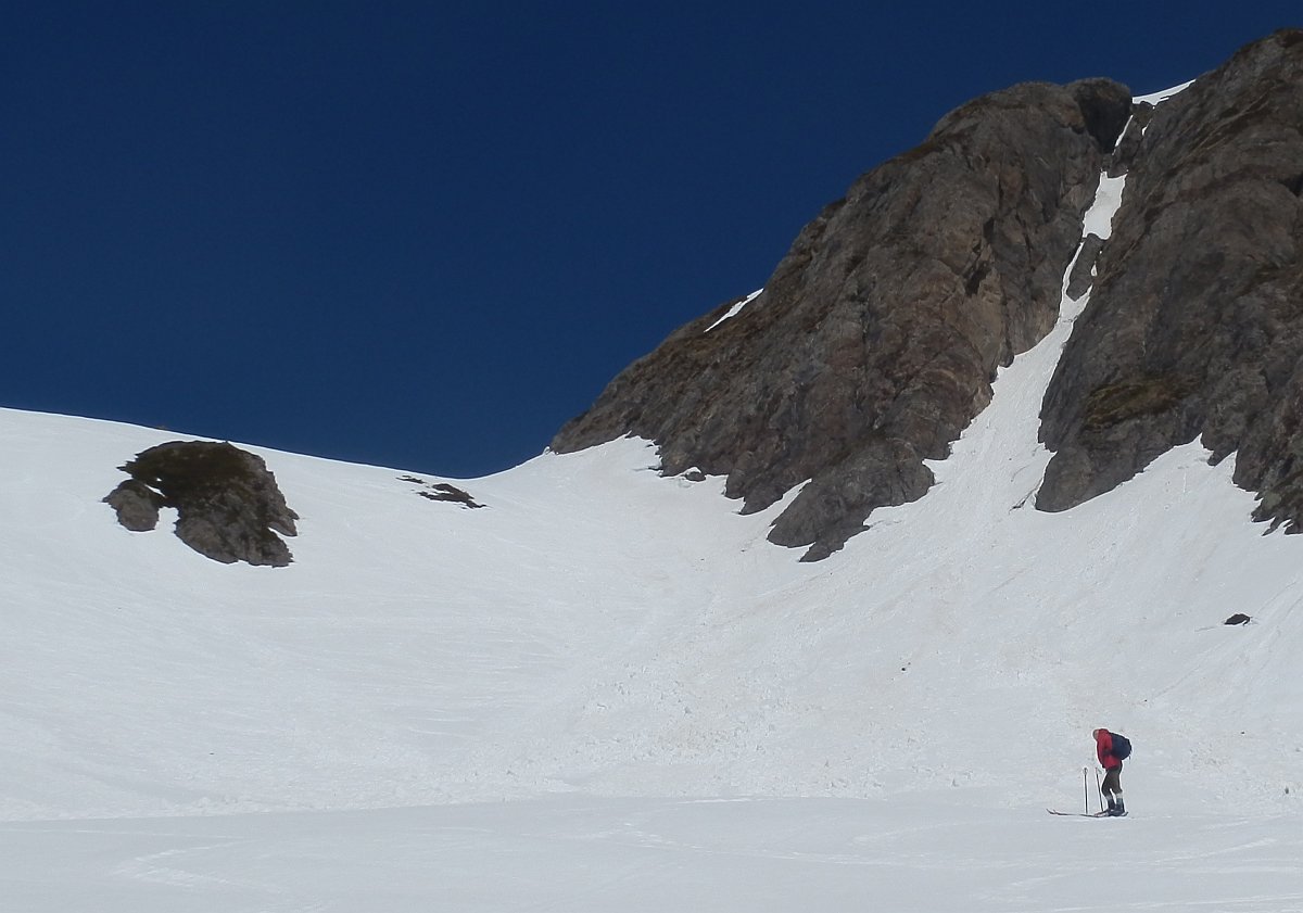 Denis Corpet. Balade faite avec Pierre-Yves PY Decaudin et le mystérieux AB, à ski le 14 Avril 2013, sur bonne neige, très froide et dure le matin, mais petite avalanche à la descente dans le raidillon SE !