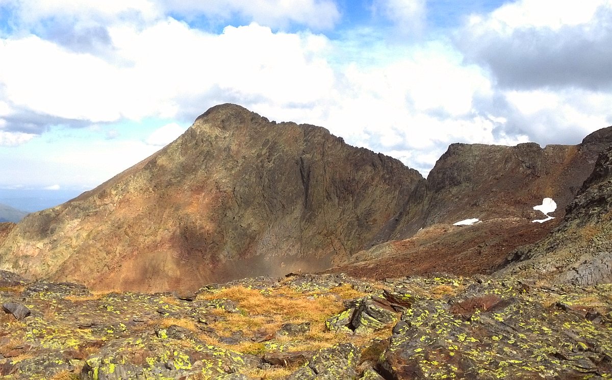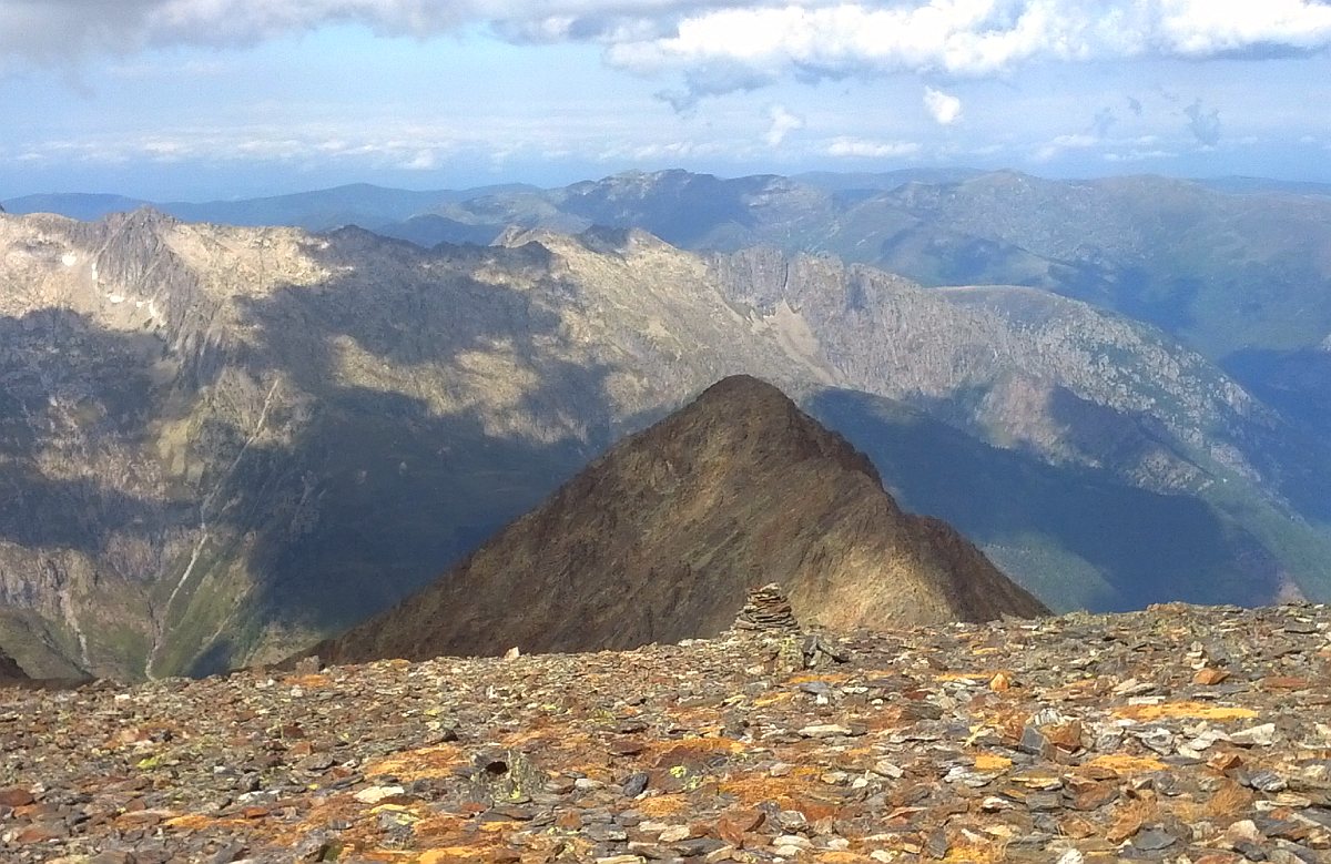 La belle pointe qui cache le Montcalm depuis la France est très rarement escaladée, et aucun sentier n'y accède. Pourtant c'est une belle balade, la montée n'est pas difficile du tout, même si elle se déroule largement hors-sentier. Randonnée seul fin septembre 2013 à la pointe du Montcalm en partant coté Orris de Pujol (+2100 m montée, 8h de marche A-R), Denis Corpet le 28 septembre 2013.