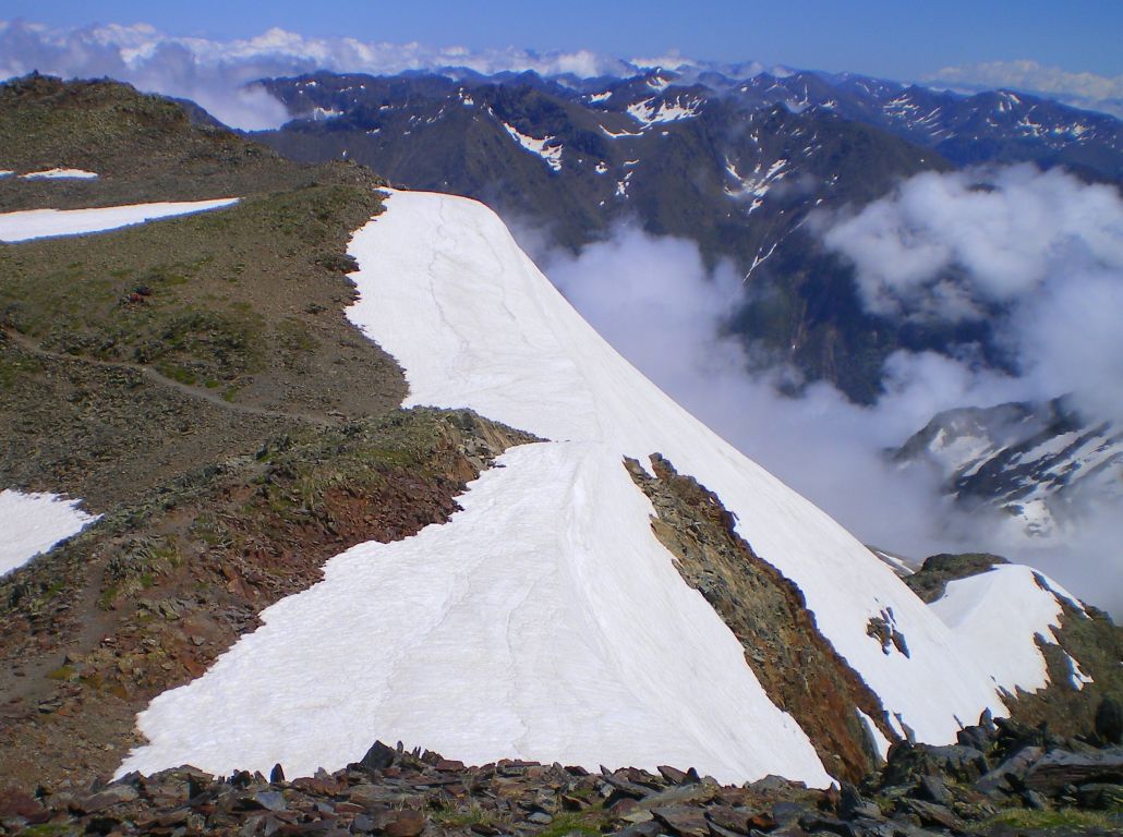 Nice walk, lots of snow, but nothing difficult, and no gear required. Two true summits higher than 3000 m in the Pyrenees mountains, south of France