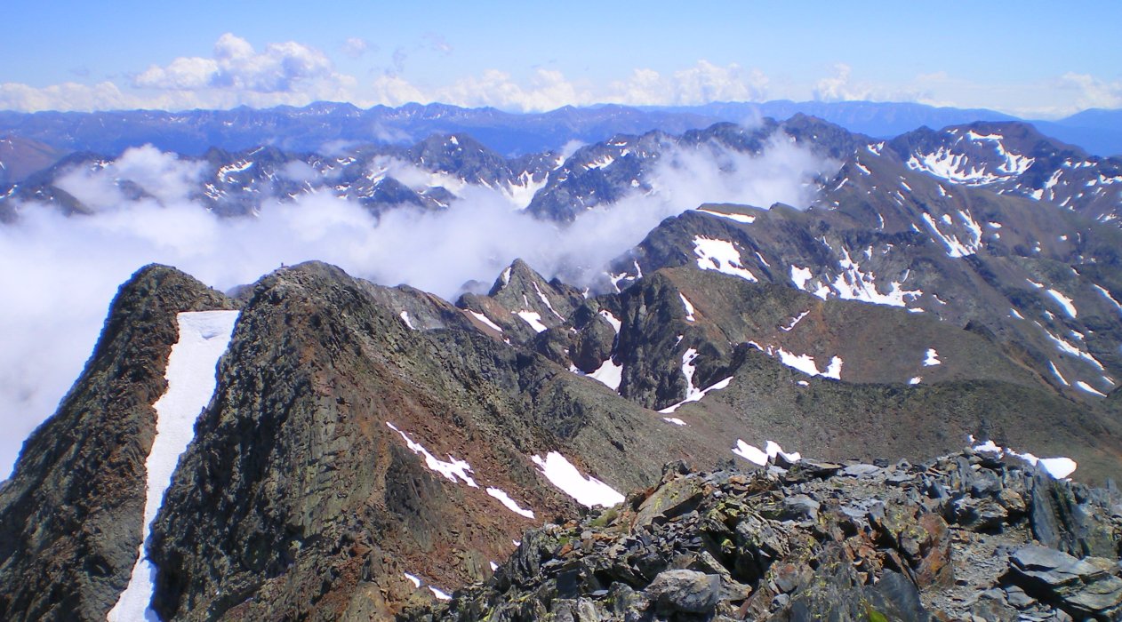 Nice walk, lots of snow, but nothing difficult, and no gear required. Two true summits higher than 3000 m in the Pyrenees mountains, south of France