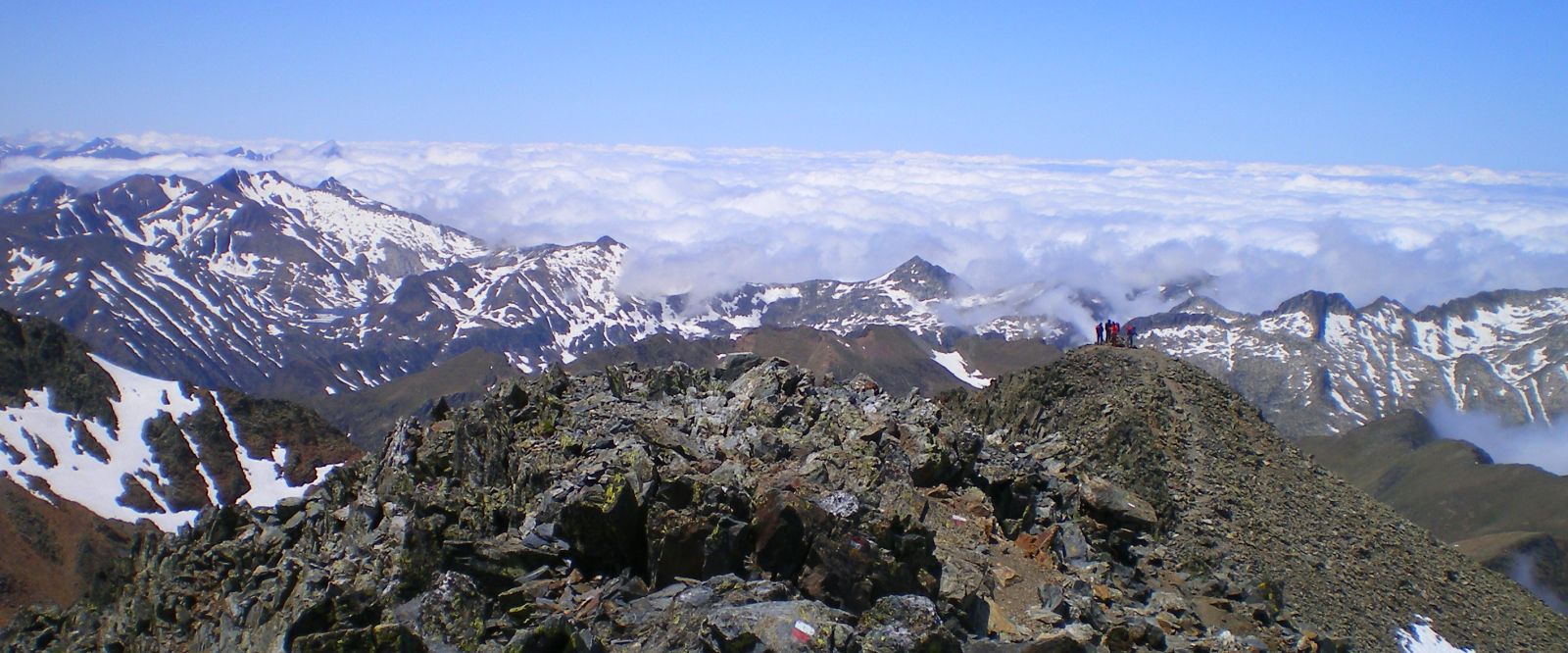 Nice walk, lots of snow, but nothing difficult, and no gear required. Two true summits higher than 3000 m in the Pyrenees mountains, south of France