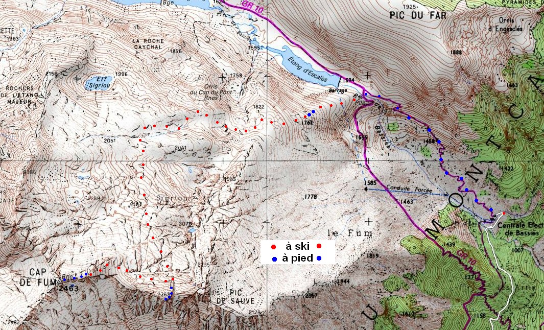 Montée par face NE au Cap de Fum en passant par le pont des étangs de Bassiès
