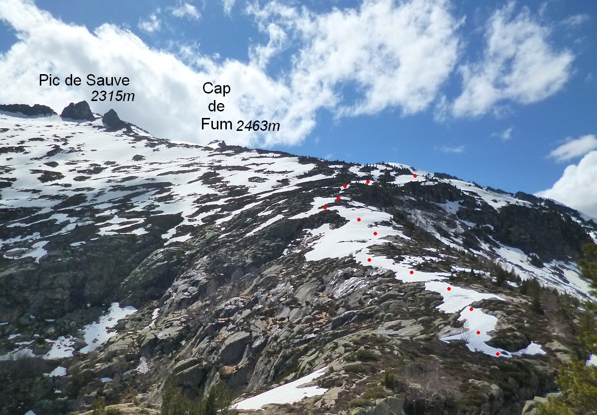 Montée par face NE au Cap de Fum en passant par le pont des étangs de Bassiès