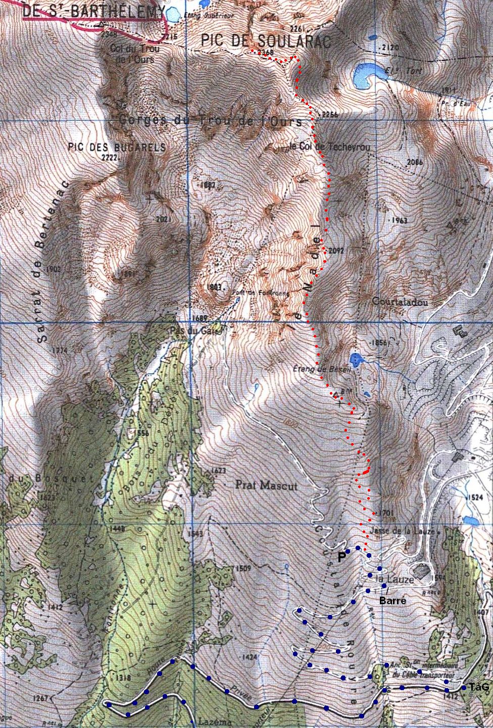 col de Techeyrou, 2256m, et pic de Soularac 2368m (facultatif AR Pic St.Bartelemy 2348m)