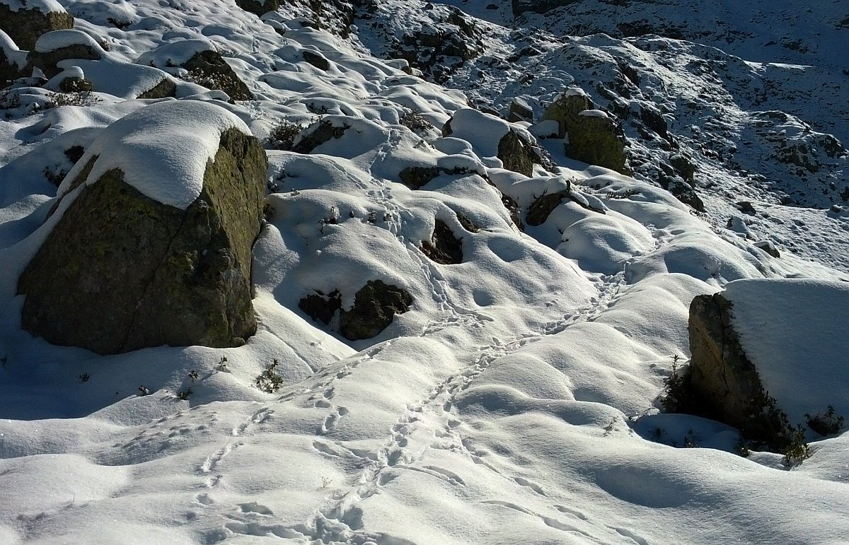 Sublime de faire la trace dans la première neige. J'ai renoncé vers 2600m: neige profonde trop foireuse