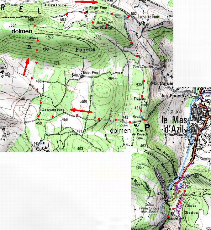 +150m & 8 km - Dolmens du Mas d'Azil & Mont Calbech 574m sur une idée de Nathalie Naud (auto 1h18 par A64 Carbonne, Rieux, Montesquieu, Sabarat)