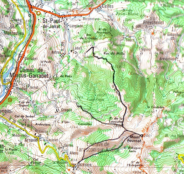 +1200m- Mont Fourcat 2001m arête N Pic de Lauzate, départ: Labat (95km 1h03) (sortie St.Paul.de.Jarrat) Mini-carte Fourcat Fait seul à ski, ± bcp de plat
