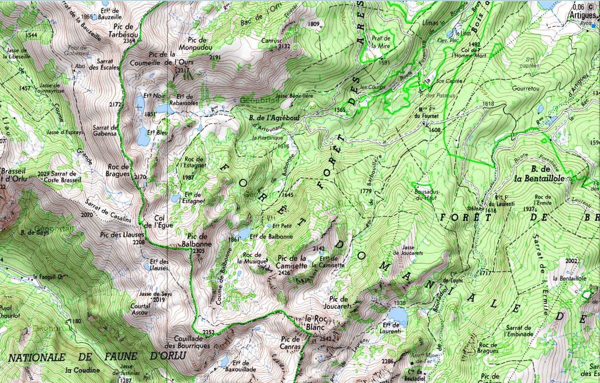 +1100m- Roc Blanc 2542m face Nord (PD+ à ED !), par Artigues ou par Orlu Carte Roc Blanc