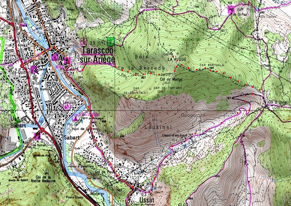 +400m- Pic de l'Aspre, 1011 m départ de Caraybat, 622m, juste après le tunnel de Foix, Auto:1h05. Au Sud