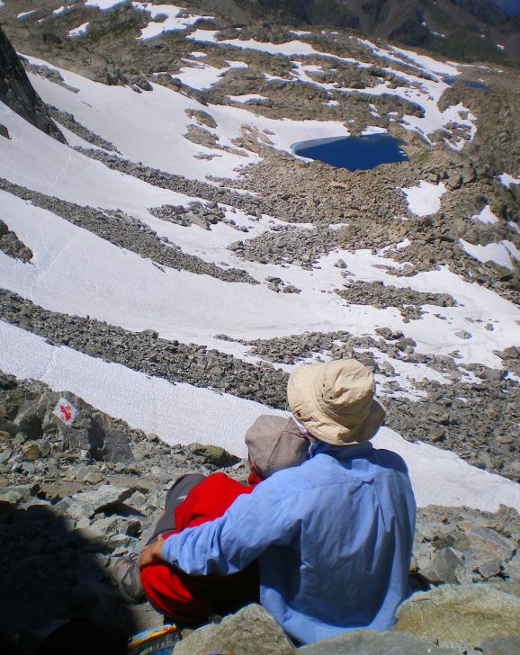 Raid-Corp-2010 : Denis, Florence, Meige, Cyrille, Cécile, Guillemette CORPET & Nathalie Délos (devenue Corpet un mois plus tard), font une belle rando de trois jours partant d'Orédon et du lac d'Aubert, passant au sommet du Néouvielle, à la brèche de Chaussenque, au refuge de la Glère, puis grimpants quatre cols ou hourquettes pour atteindre le refuge Campana de Cloutou, et reviennent par col Bastanet et Estoudou au lac d'Aubert. Un joli petit raid, une randonnée en boucle, dans les Pyrénées centrales