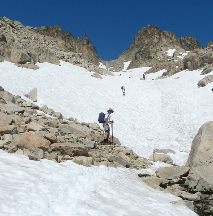 Raid-Corp-2010 : Denis, Florence, Meige, Cyrille, Cécile, Guillemette CORPET & Nathalie Délos (devenue Corpet un mois plus tard), font une belle rando de trois jours partant d'Orédon et du lac d'Aubert, passant au sommet du Néouvielle, à la brèche de Chaussenque, au refuge de la Glère, puis grimpants quatre cols ou hourquettes pour atteindre le refuge Campana de Cloutou, et reviennent par col Bastanet et Estoudou au lac d'Aubert. Un joli petit raid, une randonnée en boucle, dans les Pyrénées centrales