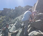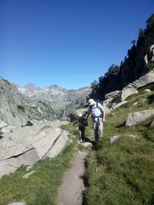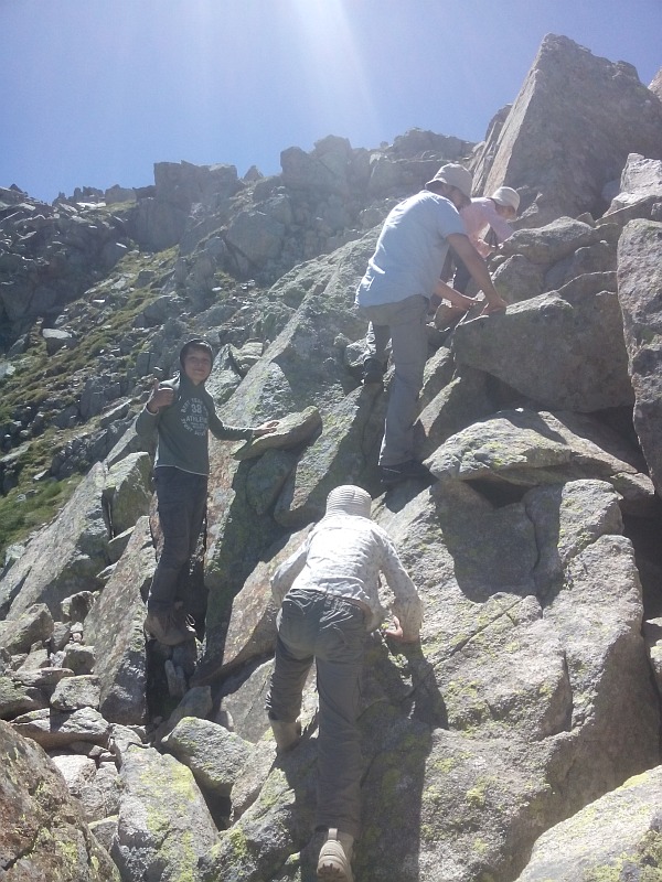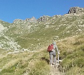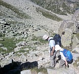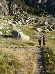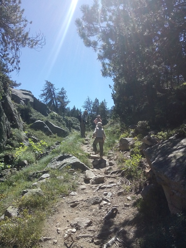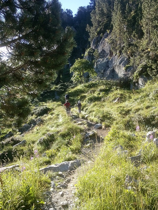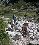 On se goure, on part vers Contraix ; montée assez forte, mais agréable : ombragée, pierriers de grosses roches avec des passages où les mains sont nécessaires. Bcp de monde.