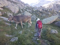Vers 2500m d’altitude, on tente de récupérer le bon chemin. On ne voit plus personne. Bcp de vaches.