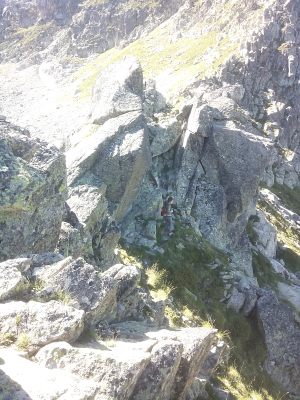 Dernier couloir très craignos : gros dénivelé, sable sous les rochers , étroit. L'alternative à droite probablement meilleure.