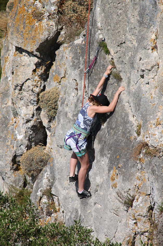 Falaise calcaire, voie courte, AD AD+, exposée. Belle entrée dans ce château cathare