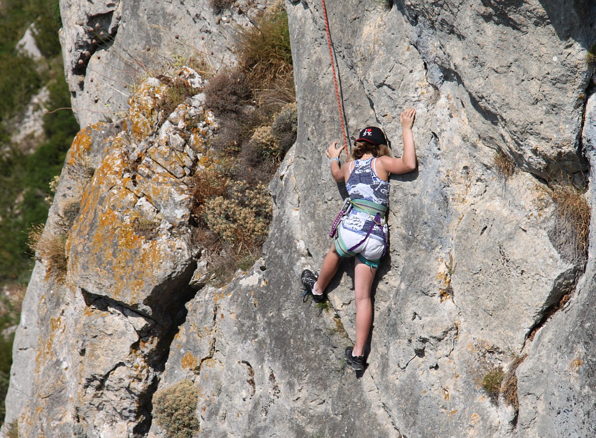 Falaise calcaire, voie courte, AD AD+, exposée. Belle entrée dans ce château cathare
