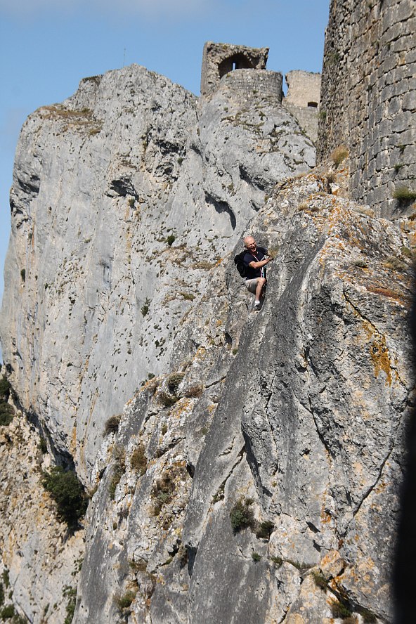 A short climb in a limestone cliff to enter Peyrepertuse castle