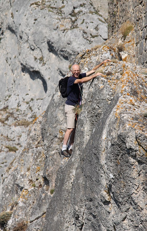 A short climb in a limestone cliff to enter Peyrepertuse castle