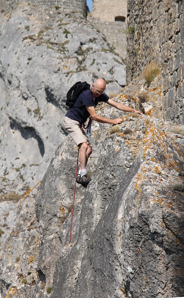 A short climb in a limestone cliff to enter Peyrepertuse castle