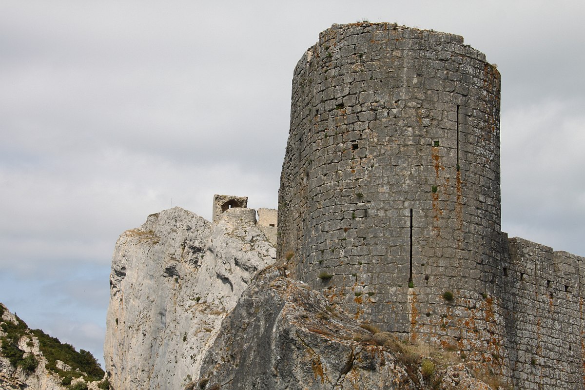 A short climb in a limestone cliff to enter Peyrepertuse castle