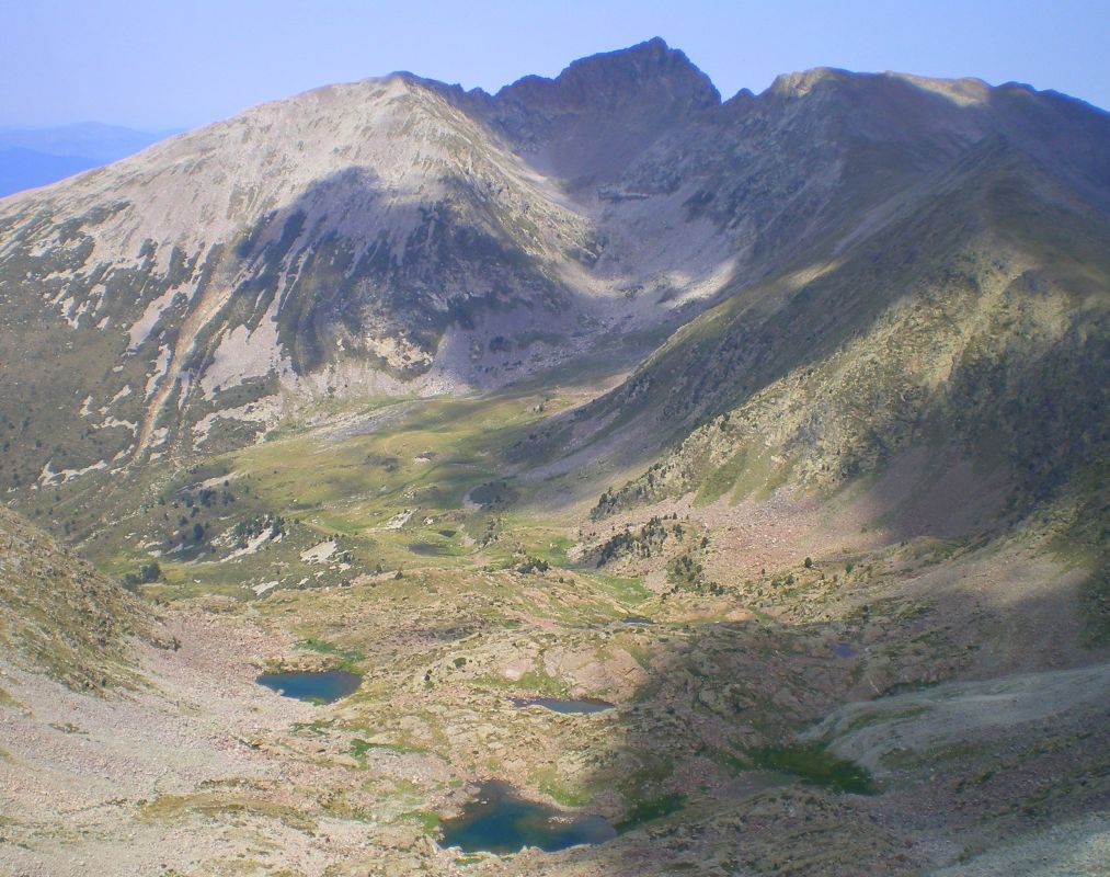 Puig Roja 2724m et Puig dels Tres Vents 2731m, au départ du refuge de Mariailles, en passant par le pla de Guilhem, le col des Boucacers, le pic des Sept Hommes, et en redescendant par les Gourgs de Cady, puis le chemin du Canigou (HRP) qui passe au refuge Arago, et revient à Mariailles par le GR10.