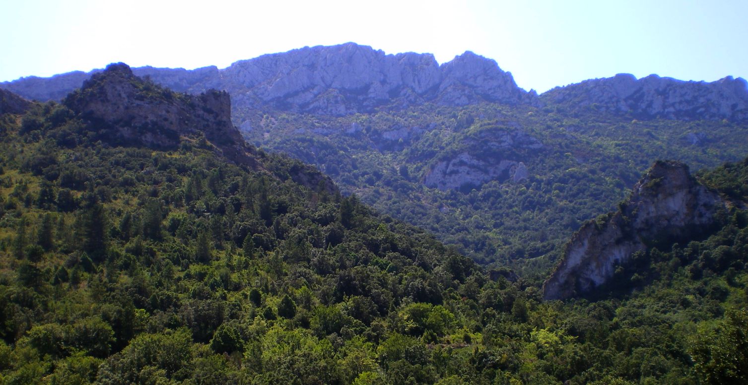 Belle balade, beau sommet: trois approches: 1- du Grau de Maury "la totale", 2- par la bergerie de Bugamus et la route des Cols, ou 3- par la "mano negra", itinéraire présenté ici. (cette image fait width="1507" x height="777" )